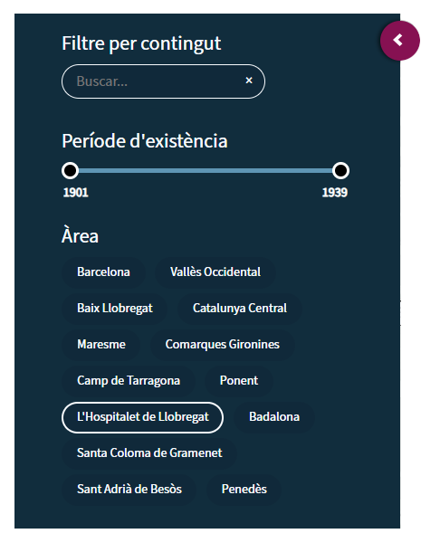 Buscados y filtros por contenido, periodo de existencia o área