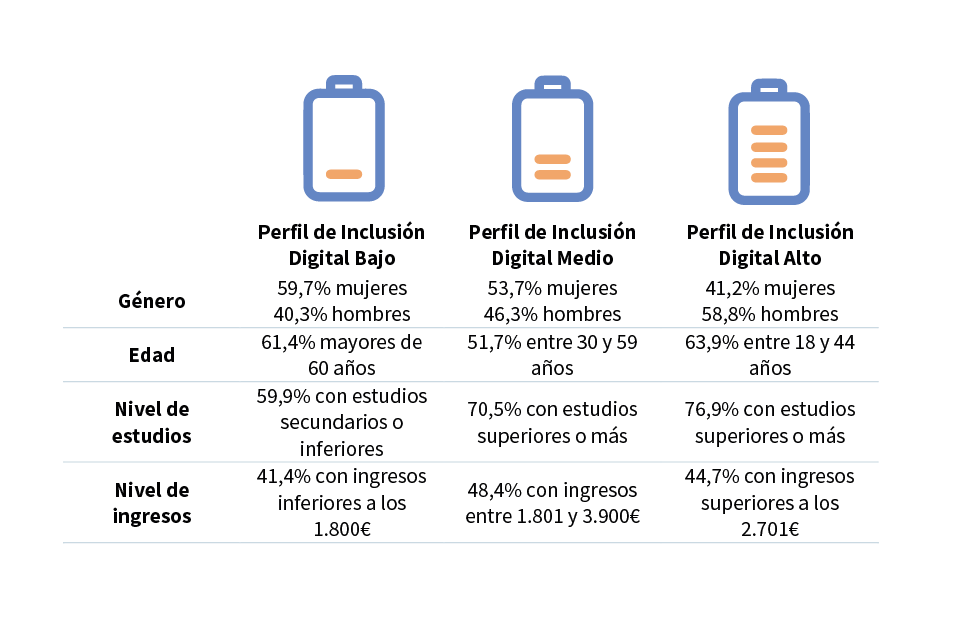Els tres perfils d' inclusió digital i les seves principals característiques són: